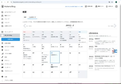 はてなでは過去記事に偽装可能らしい。投稿日が令和七年睦月29日だが、これを書いているのは令和七年如月12日である。これって遡及適用が可能という意味であって長所短所あるだろうが・・・どうなんだろう。 夏休みの宿題を始業後に行う様な気分:) で…