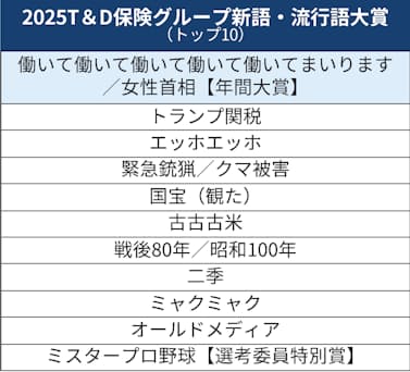 ほかにトップテンに入ったのは「トランプ関税」「古古古米」「戦後80年/昭和100年」「オールドメディア」など。